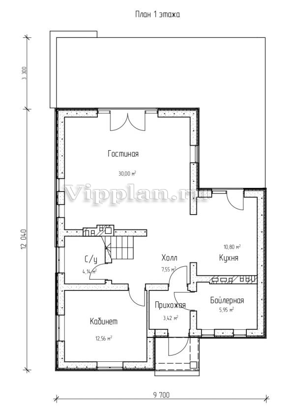 | Размеры дома: | 12.04м×9.7м |