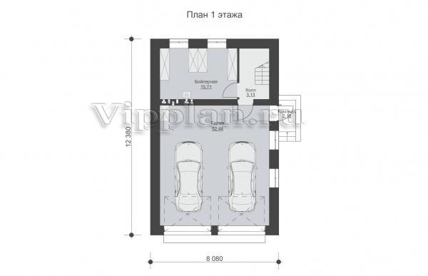 | Размеры дома: | 12.38м×8.08м |