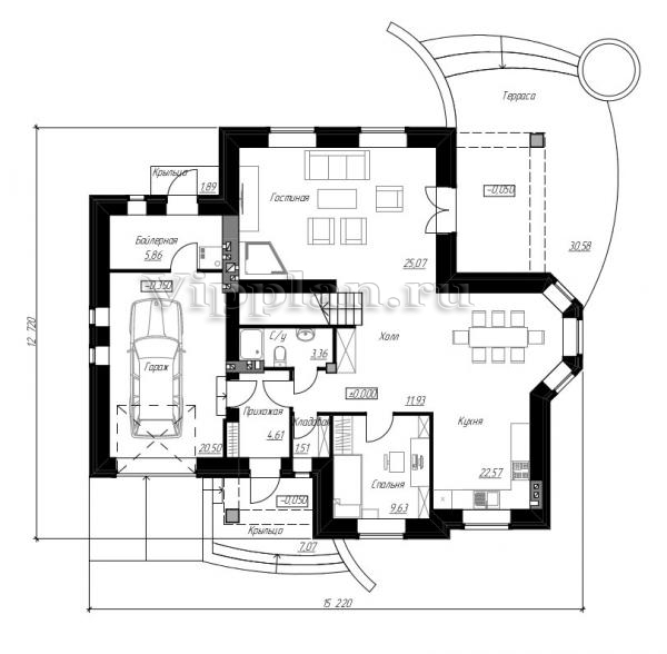 | Размеры дома: | 15.22м×12.72м |