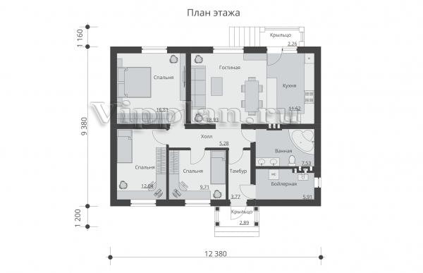 | Размеры дома: | 11.74м×12.38м |