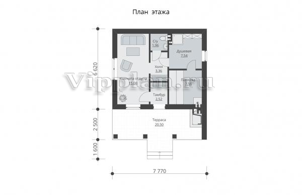 | Размеры дома: | 9.12м×7.77м |