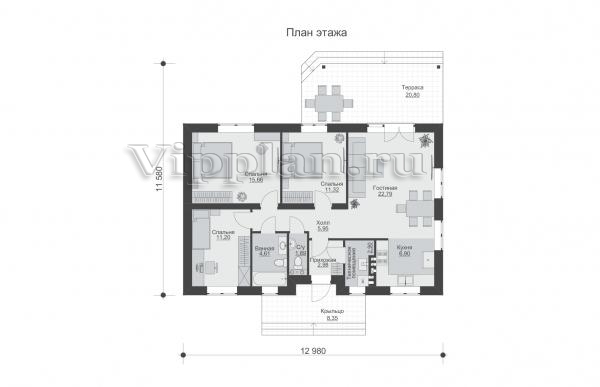 | Размеры дома: | 12.98м×11.58м |