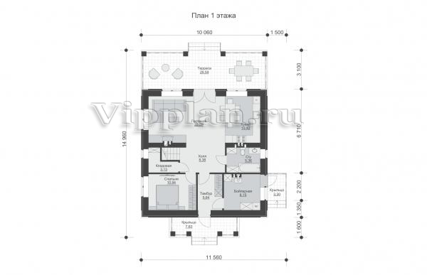 | Размеры дома: | 14.96м×11.56м |